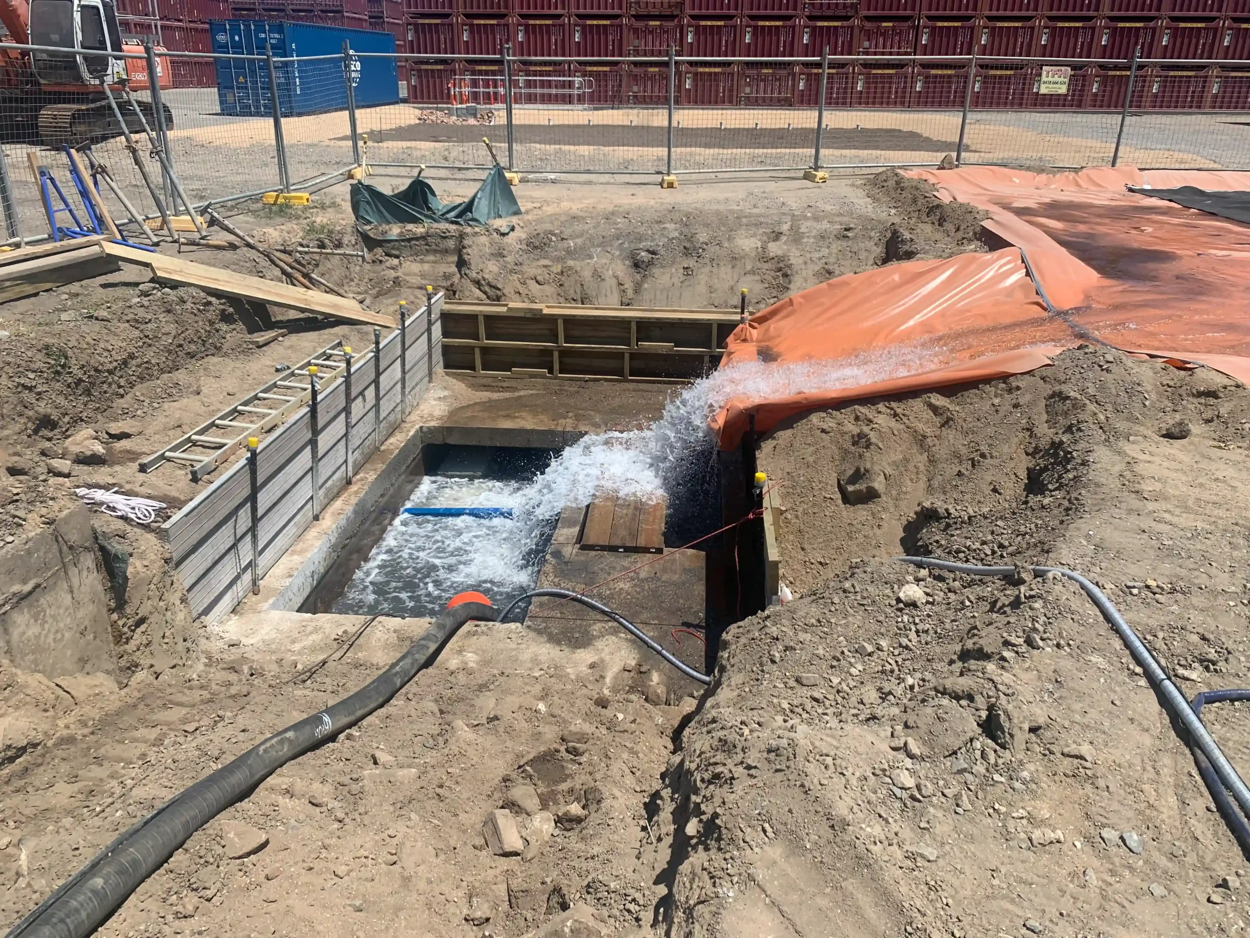 Desilting Solutions successfully managed the desilting of the culvert through the dosing of polymer slurry stream and the use of GeoTubes. This resulted in the effluent being suitable for release back into the culvert, as supervised by the Ports own environmental team.